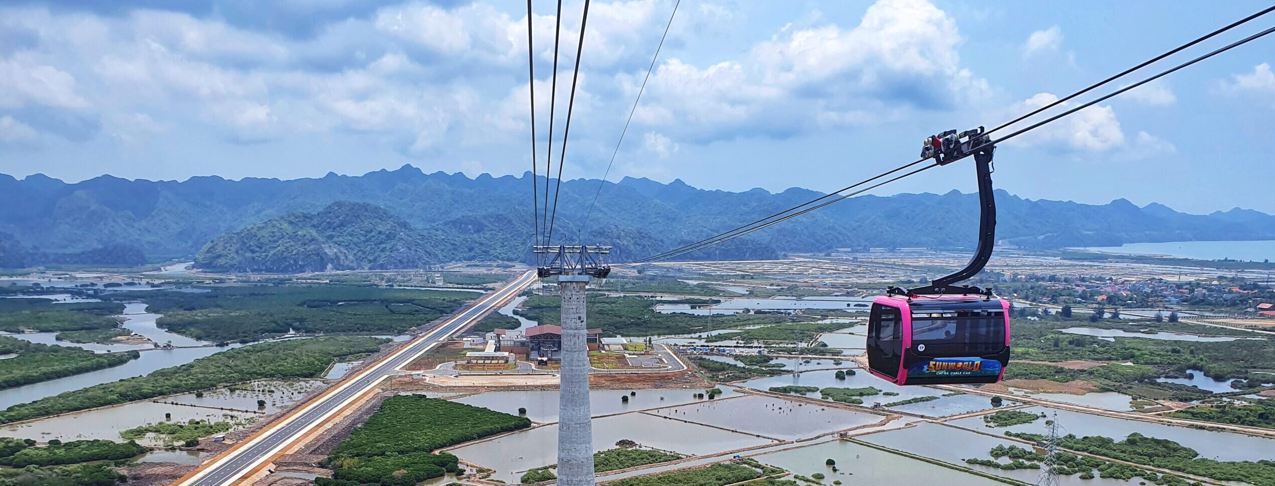 The Cat Ba Cable Car, holding the world record for tallest Cable Car Tower in the World, opened in 2020 and operated by Sun World, is a remarkable addition to the already breathtaking landscape of Cat Ba in Vietnam. This engineering marvel allows visitors to enjoy a bird's-eye view of the stunning mountains of Car Ba Island and the lush green islands, which define this UNESCO World Heritage Site.